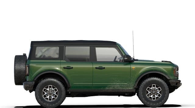 Price includes: $1500 - Retail Bonus Cash. Exp. 01/05/2026 Green 2025 Ford Bronco Badlands 4WD 10-Speed Automatic 2.7L EcoBoost V6 4-Wheel Disc Brakes, 4.7 Axle Ratio, 7 Speakers, ABS brakes, Air Conditioning, Alloy wheels, AM/FM radio: SiriusXM with 360L, AM/FM Stereo, Auto High-beam Headlights, Auto-dimming Rear-View mirror, Brake assist, Compass, Connected Navigation, Delay-off headlights, Driver door bin, Driver vanity mirror, Dual front impact airbags, Dual front side impact airbags, Electronic Stability Control, Emergency communication system: 911 Assist, Exterior Parking Camera Rear, Front anti-roll bar, Front Bucket Seats, Front Center Armrest, Front fog lights, Front reading lights, Front wheel independent suspension, Fully automatic headlights, Heated door mirrors, Heated front seats, Heated steering wheel, Illuminated entry, Integrated roll-over protection, Leather Shift Knob, Low tire pressure warning, Marine Grade Vinyl Heated Bucket Seats, Occupant sensing airbag, Outside temperature display, Overhead airbag, Overhead console, Panic alarm, Passenger door bin, Passenger vanity mirror, Power door mirrors, Power steering, Power windows, Radio data system, Remote keyless entry, Security system, SiriusXM w/360L, Speed control, Split folding rear seat, Steering wheel mounted audio controls, SYNC 4, Tachometer, Telescoping steering wheel, Tilt steering wheel, Traction control, Trip computer, Variably intermittent wipers, Voltmeter.
