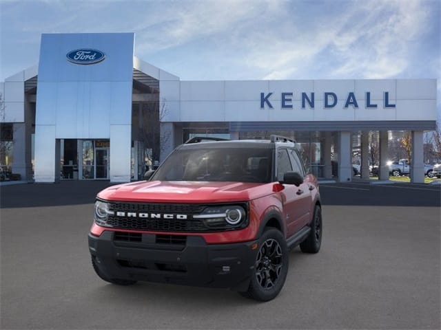 2nd Row Carpeted Seatback, 4-Wheel Disc Brakes, 6 Speakers, ABS brakes, Air Conditioning, Alloy wheels, AM/FM radio: SiriusXM with 360L, AM/FM Stereo, Apple CarPlay/Android Auto, Auto High-beam Headlights, Auto-dimming Rear-View mirror, Automatic temperature control, Brake assist, Compass, Connected Navigation (1-Year Included), Delay-off headlights, Driver door bin, Driver vanity mirror, Dual front impact airbags, Dual front side impact airbags, Electronic Stability Control, Emergency communication system: SYNC 4 911 Assist, Equipment Group 300A Standard Package, Exterior Parking Camera Rear, Ford Connectivity Package (1-Year Included), Four wheel independent suspension, Front anti-roll bar, Front Bucket Seats, Front Center Armrest, Front Driver/Passenger Seat Back Map Pockets, Front dual zone A/C, Front fog lights, Front License Plate Bracket, Front Parking Sensors, Front reading lights, Fully automatic headlights, Heated door mirrors, Heated front seats, Heated steering wheel, Illuminated entry, Internet access capable: 5G Modem - Ford Connectivity Package, Knee airbag, Low tire pressure warning, Memory seat, Occupant sensing airbag, Outer Banks Tech Package+, Outside temperature display, Overhead airbag, Overhead console, Panic alarm, Passenger door bin, Passenger vanity mirror, Power door mirrors, Power driver seat, Power Moonroof, Power passenger seat, Power steering, Power windows, Radio data system, Radio: HD w/B&O Sound System by Bang & Olufsen, Rear anti-roll bar, Rear Parking Sensors, Rear reading lights, Rear seat center armrest, Rear window defroster, Rear window wiper, Remote keyless entry, Reverse Brake Assist, Security system, Speed control, Speed-sensing steering, Speed-Sensitive Wipers, Split folding rear seat, Steering wheel mounted audio controls, Tachometer, Telescoping steering wheel, Tilt steering wheel, Traction control, Trip computer, Variably intermittent wipers. Ruby Red Metallic Tinted Clearcoat 2026 Ford Bronco Sport Outer Banks 4WD 8-Sp